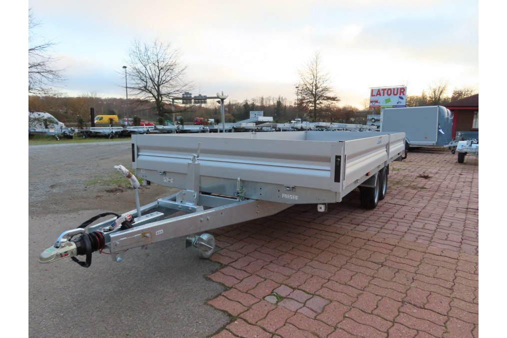 Remorque Freinée Plateau Roues Dessous 2500/2000 kg Double essieu 506 x 215 cm