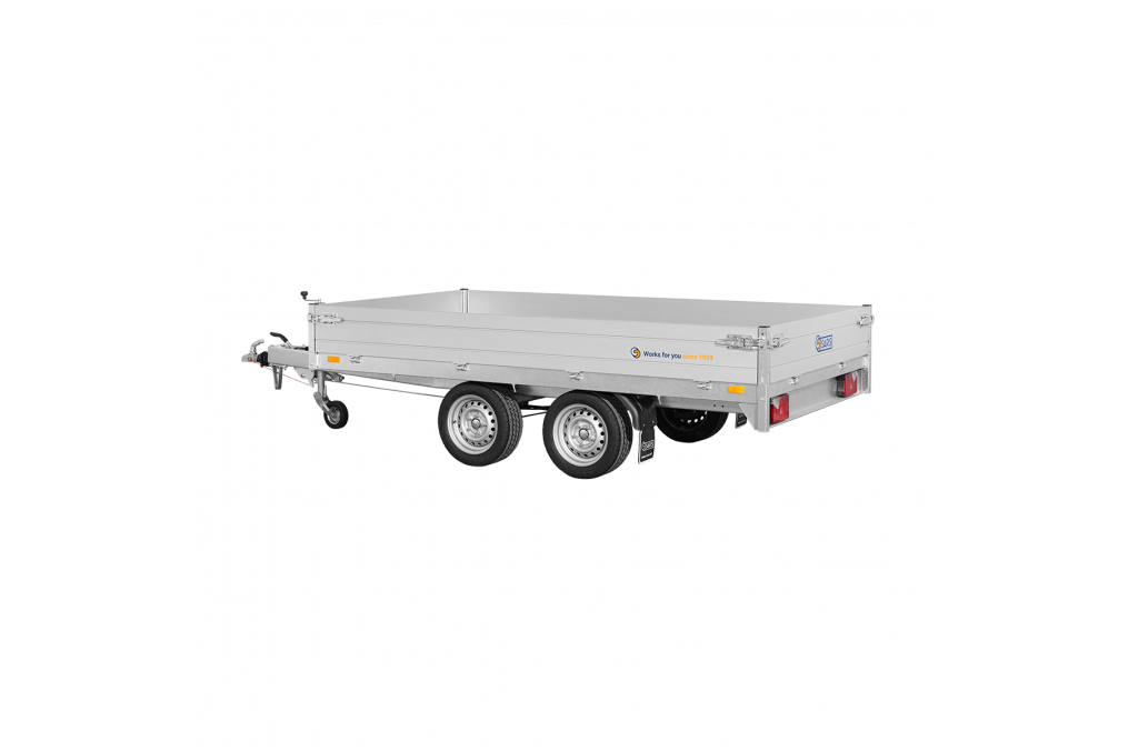 La remorque plateau Saris PL30617035002 possède un châssis entièrement soudé, des ridelles en aluminium double paroi.