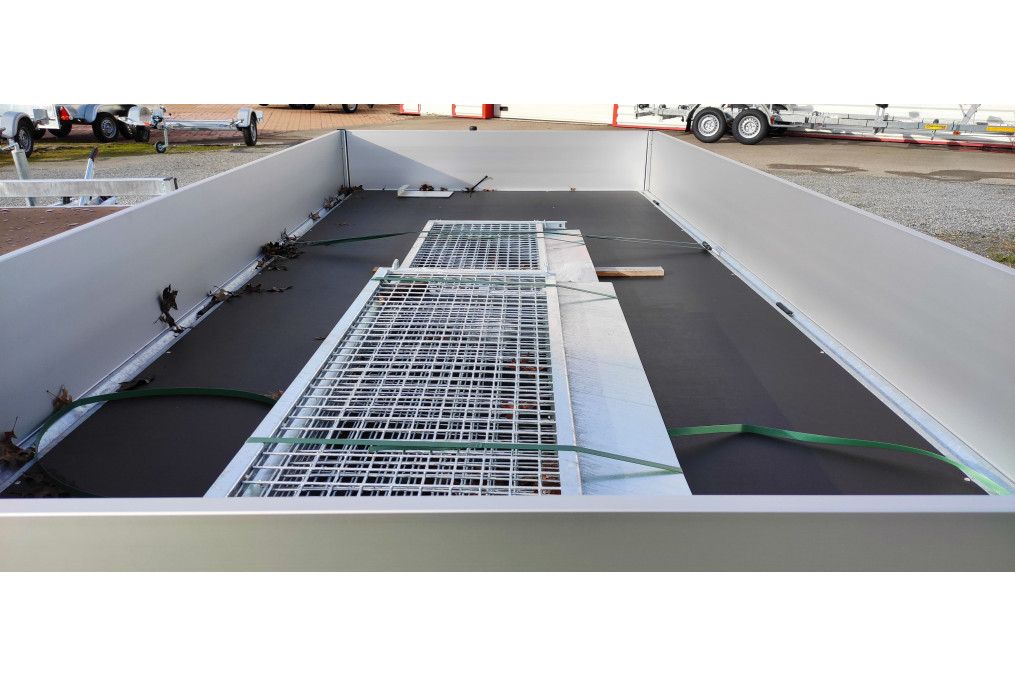 La remorque plateau Saris PL40618427002 possède un châssis entièrement soudé, des ridelles en aluminium double paroi.