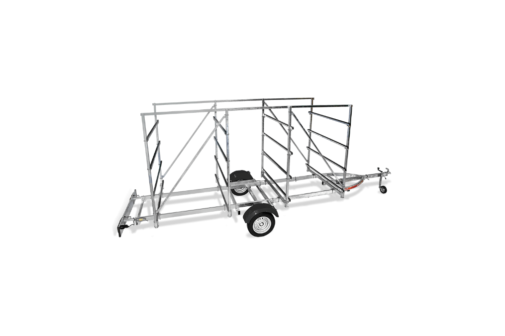 Remorques ROCCA conçues pour le transport de 6 à 8 dériveurs optimistes.
