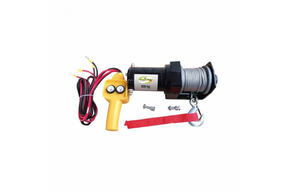 Treuil électrique 12V 900kg avec télécommande filaire et câble en acier 4mm x 9M.